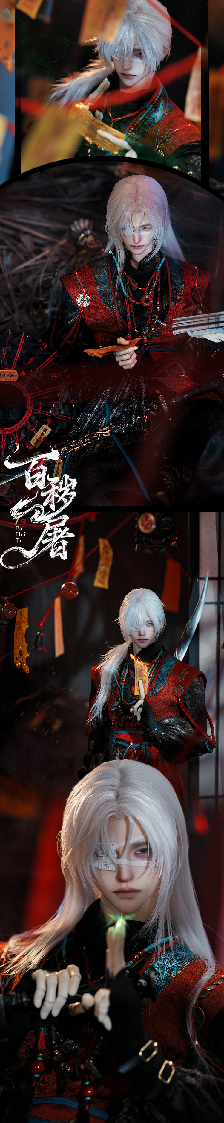 [Full include] Fullset: Bai Hui Tu(nude), Wig A LHWG3-S0058(size 77), Outfit 77BC-0006(size 77), Shoes LH77SH-0001(size 75), Eyes A(16mm with smaller iris), Mask LHAP-0075(black resin, with make-up A), Sword LHAP-0076(black resin, with make-up A), Certification head plate, Authentication plate, Birth certificate, Mask, Official box
