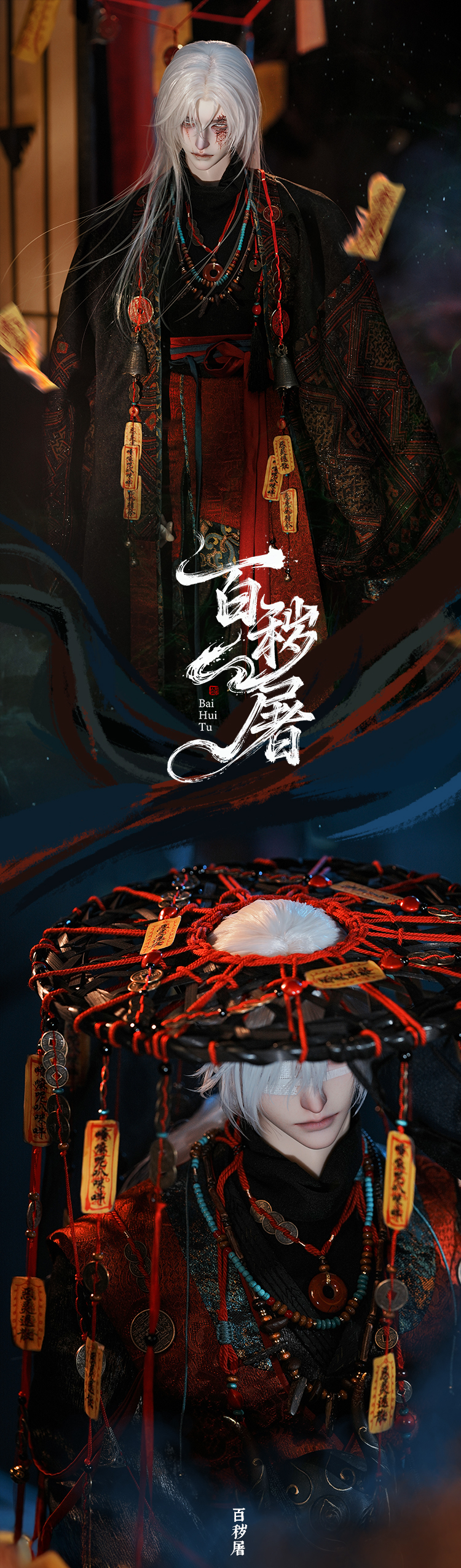 [Full include] Fullset: Bai Hui Tu(nude), Wig A LHWG3-S0058(size 77), Outfit 77BC-0006(size 77), Shoes LH77SH-0001(size 75), Eyes A(16mm with smaller iris), Mask LHAP-0075(black resin, with make-up A), Sword LHAP-0076(black resin, with make-up A), Certification head plate, Authentication plate, Birth certificate, Mask, Official box