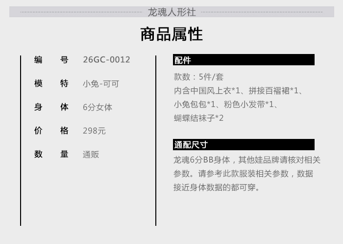 商品属性 [性别] ♂ [分类] (6)纯真年代(26cm)