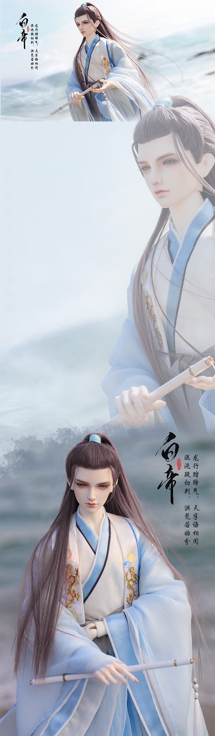 商品属性 [人形师] 龙魂创作团队 [头围] 21cm [官图眼珠] 14cm [身高] 73cm [官图肤色] 环保白肌 [裸娃] 包括白帝裸娃一体 [全套] 包括白帝裸娃一体,头发WG3-1001(造型发)、眼珠P-0027(14mm小虹膜)、官服73BC-0042、鞋子70S-0029 [妆面设计师] 龙魂设计团队 [服装品牌] 龙魂设计团队 [假发] 造型发设计:龙魂设计团队 毛坯发来源:夙秀坊