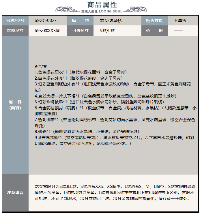 龙女·纨绮衫 官服 69GC-0027(不单售)