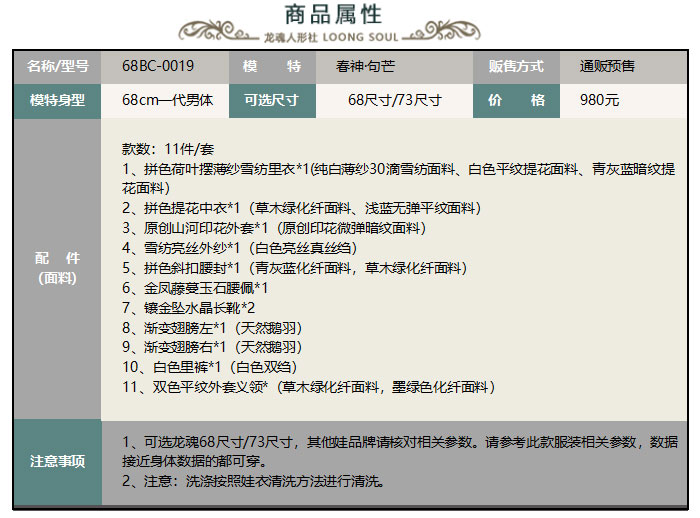 春神·句芒古装bjd官服68BC-0019(含鞋子)