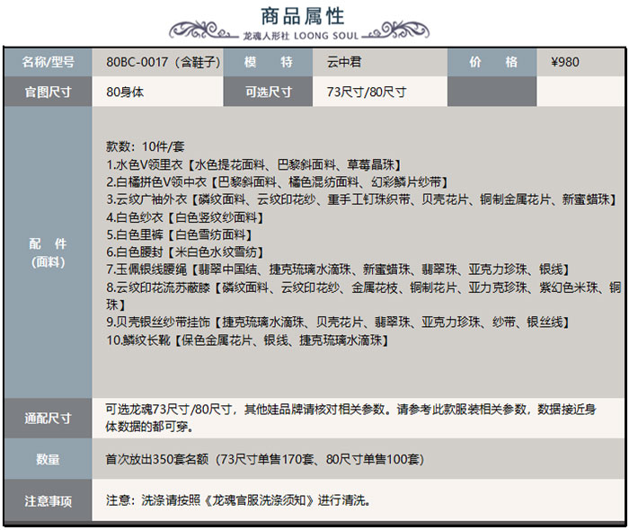 龙魂人形社 九歌系列 云中君官服80BC-0017