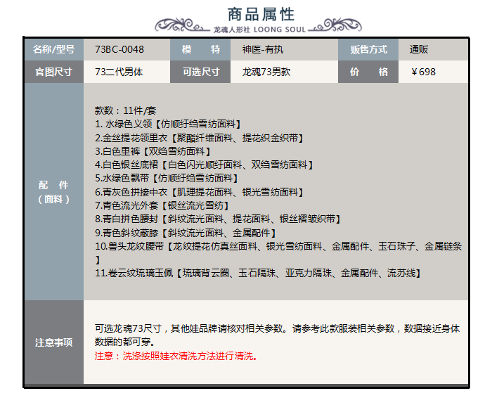 商品属性 [性别] ♂