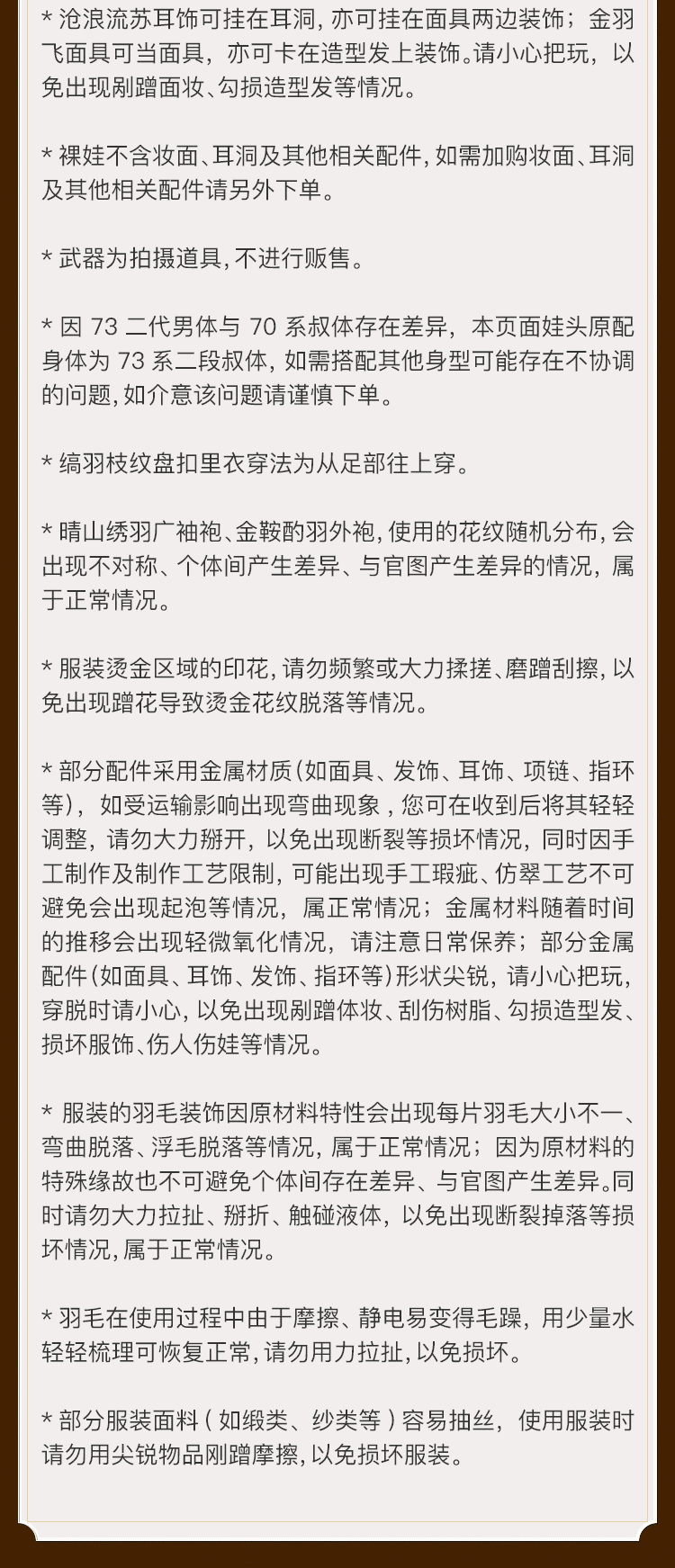 4、购买重明鸟裸娃、官服及其相关配件,单笔订单(不含运费)金额满200元可享受全国顺丰包邮(不含港澳台、偏远地区)。
