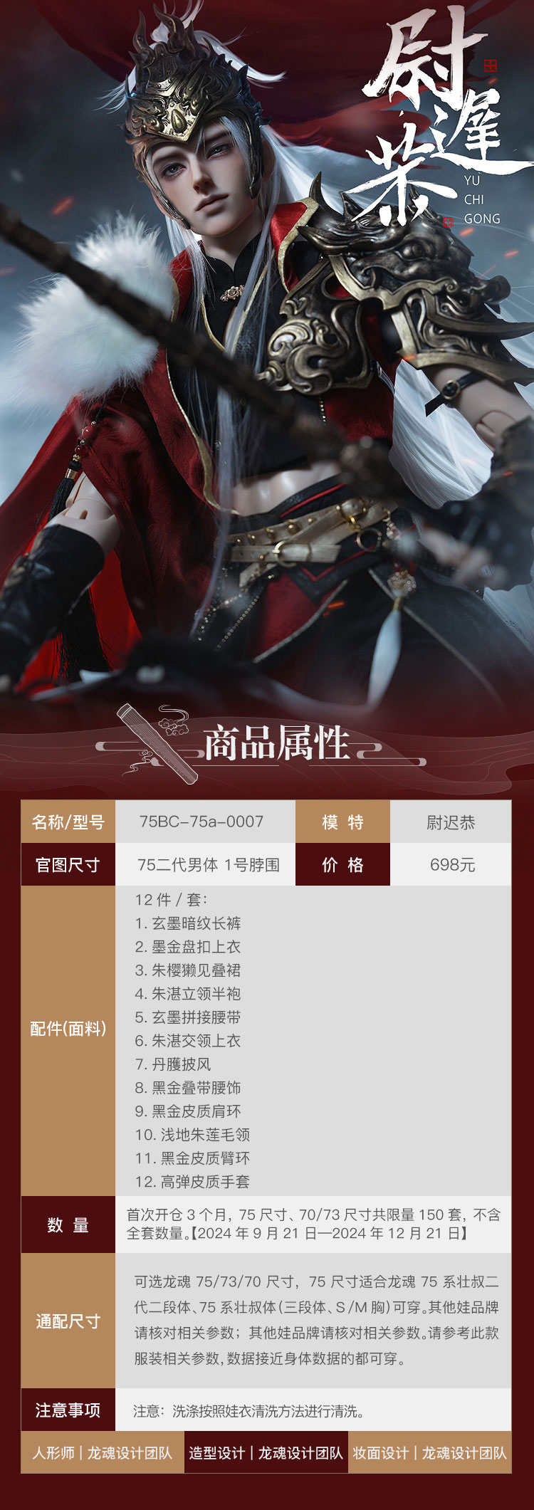 龙魂BJD娃衣 尉迟恭 官服75BC-75a-0007