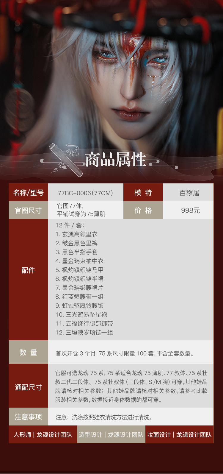 龙魂 百秽屠 官服77BC-0006(77CM) BJD娃衣 明信片