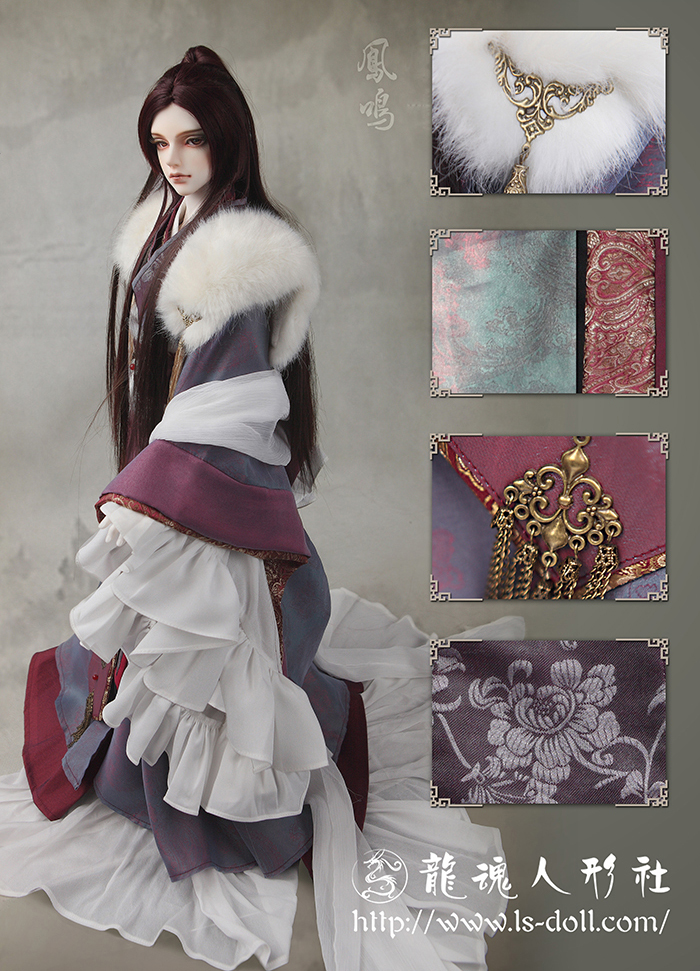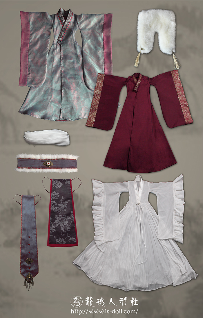 编号: 73BC-0024 模特: 凤鸣 身体: 73二代叔体 价格: 868元 配件: 款数:8件/套 内含外衣*1 、中衣*1、里衣*1、敝屣*2、腰封*1、毛领*1、飘带*1 数量: 限60套 通配尺寸: 龙魂叔体,其他娃品牌请核对相关参数。请参考此款服装相关参数,数据接近身体数据的都可穿。