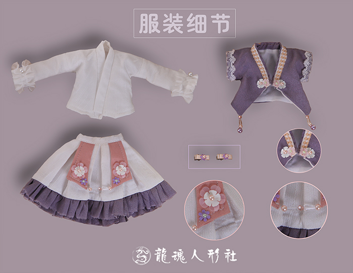 编号: 26GC-0011 模特: 韶月 身体: 26BB身体 价格: 328元 配件: 款数:5件/套 内含白色长袖里衣*1、吊珠粘花小马甲*1、粘花细褶短裙*1、粘花小发夹*2 数量: 限60套 通配尺寸: 龙魂BB身体,其他娃品牌请核对相关参数。请参考此款服装相关参数,数据接近身体数据的都可穿。 注意事项: 衣服不能水洗,如需清洗,请先询问客服,我们会提供正确的清洗方式